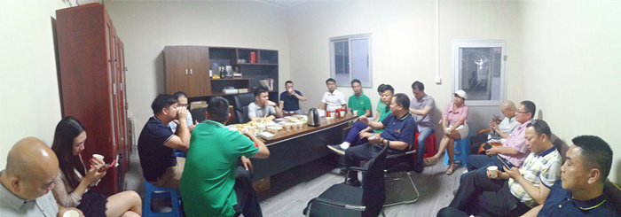 (上图为吴总带领会员企业参观工厂内部,讲解生产流程)